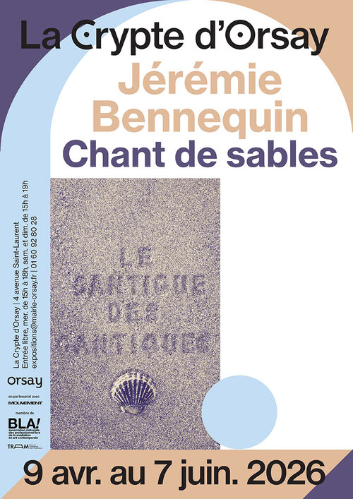 Dans le cadre de sa résidence à la Crypte d’Orsay, Jérémie Bennequin explore les mots d’un dialogue amoureux provenant d’un chant très ancien, un poème voluptueux consacré au premier siècle de notre ère dans la Bible hébraïque et l’Ancien Testament chrétien comme le « chant des chants » – Cantique des cantiques. Transposant l’univers de ce texte culte dans le domaine de l’art contemporain, ce projet d’exposition engage une expérience multisensorielle à travers le principal médium du sable et d’autres poudres aromatiques, tout à la fois support d’une écriture éphémère et texture de son ensevelissement…